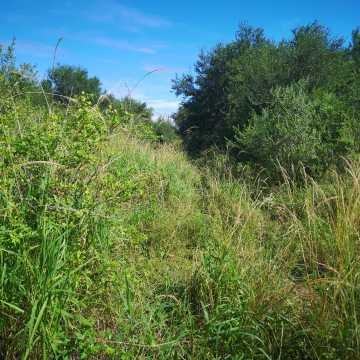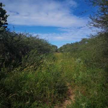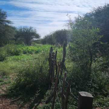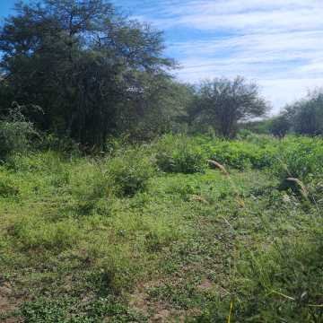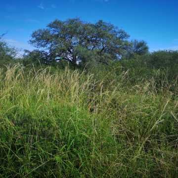 El campo tiene vegetación de mediana altura para arriba, con presencia de especies nativas: algarrobo blanco, negro, quebracho y otras.