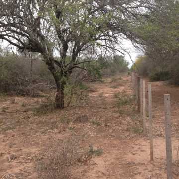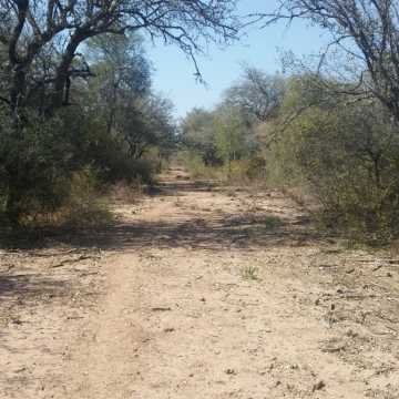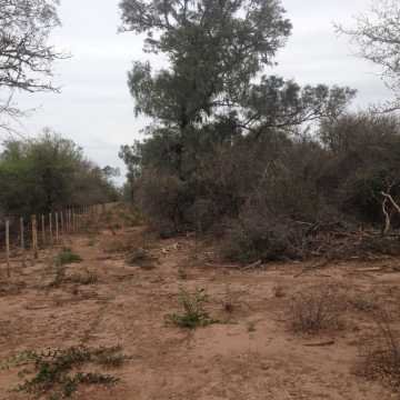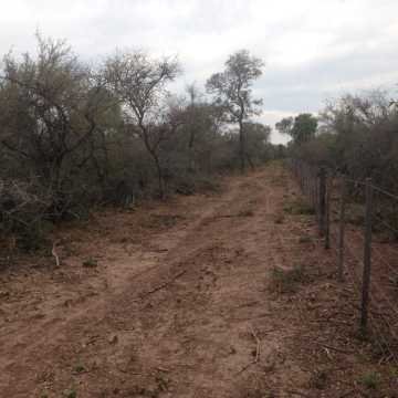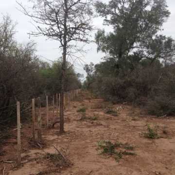 El campo tiene alambrado perimetral de siete hilos en el 50% del perímetro; en el resto falta abrir las picadas y construir el alambrado.